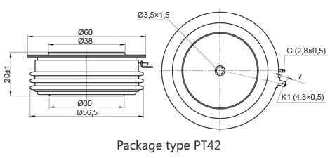 Their main applications are rectifiers for large AC drives, aluminum smelting and other metal refining as well as trackside supply. “Air-cooled heatsinks O series for disc devices”, “Air heatsink SF series”, “Water heatsink SS series” for diode cooling are also available to order. The diode has an industry standard ceramic housing making it easy to integrate the device into existing equipment. This diode has a disc housing with pressure contacts. The polarity of the diode (anode, cathode) is determined by the icon on the case. The technical specifications, part numbering guide, datashets for diodes are listed below.